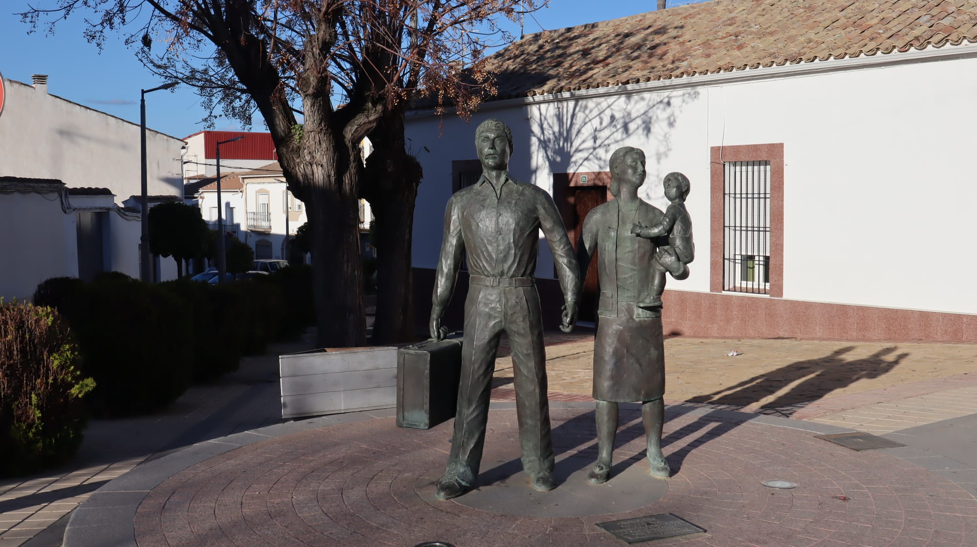 Just a few meters away, another monument pays tribute to local emigrants. A statue depicts a man with a suitcase and a woman with a baby in her arms, as if these were the only two options for the people of Lopera: tending the olives or leaving.
